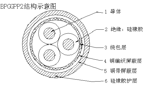 BPGVFPP2 | 硅橡膠絕緣丁腈護套銅絲編織銅帶繞包屏蔽耐高溫變頻電力電纜。 |